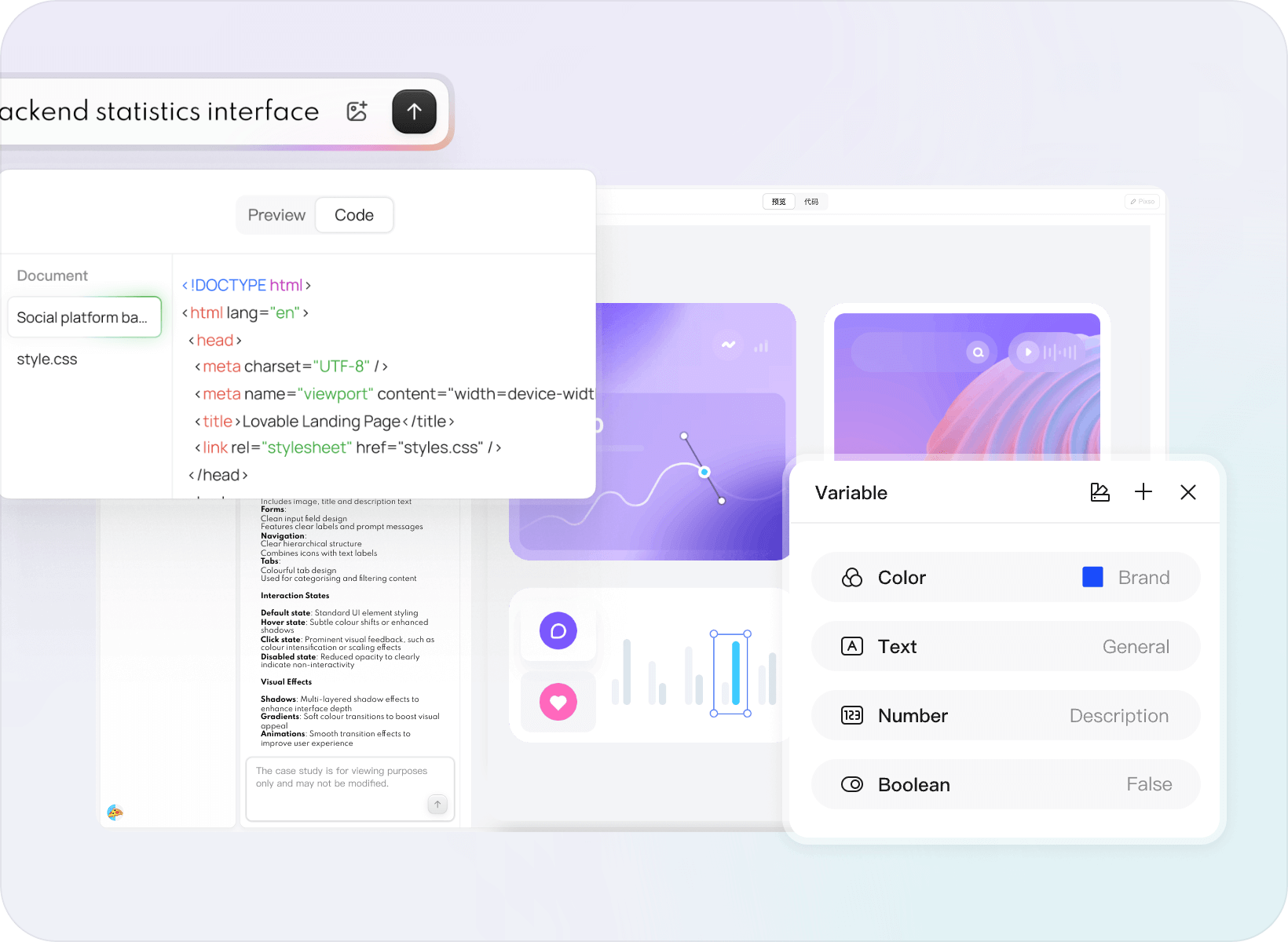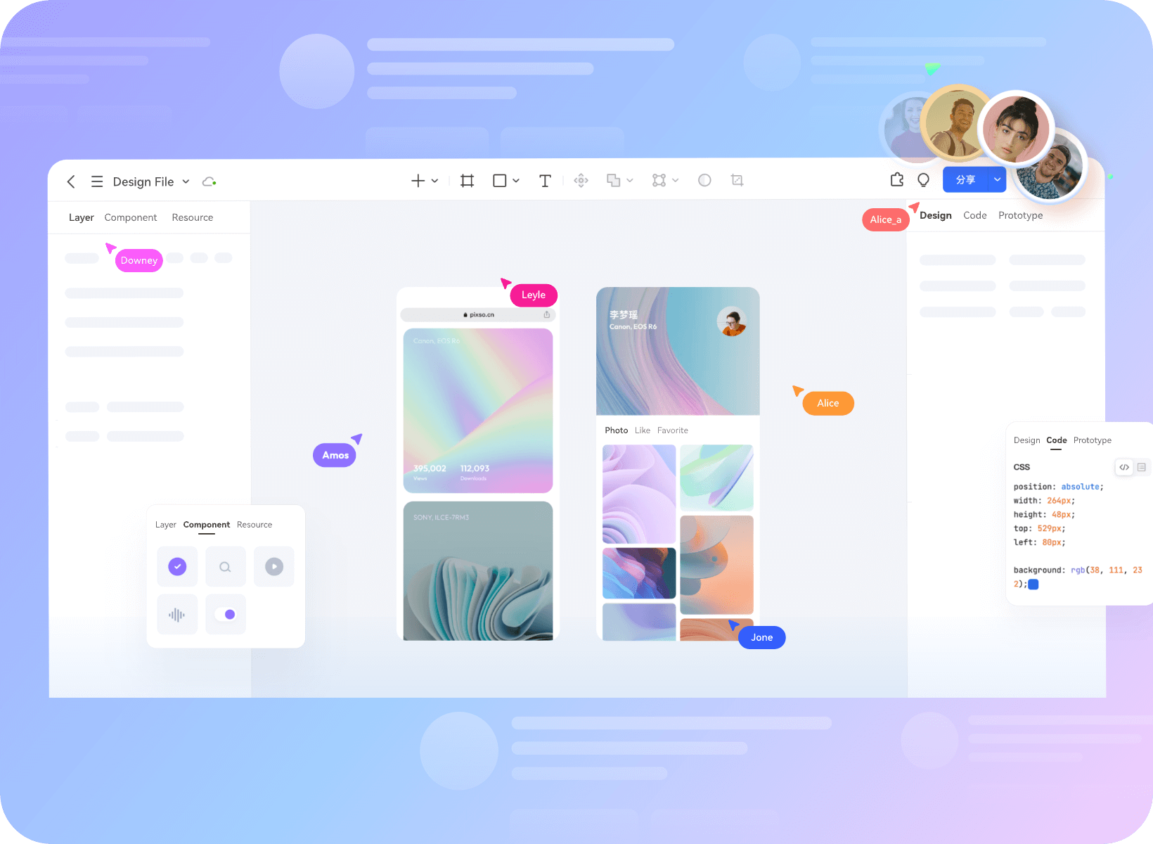 · Prodes design is fully aligned with Figma core functionality, supporting variable management, component variants, real-time collaboration, new AI design generation, D2C to code (adapted to Hongmeng ArkTS), Figma file import completeness of 99.9%, but also built-in component libraries of large factories and multi-color vector mesh technology