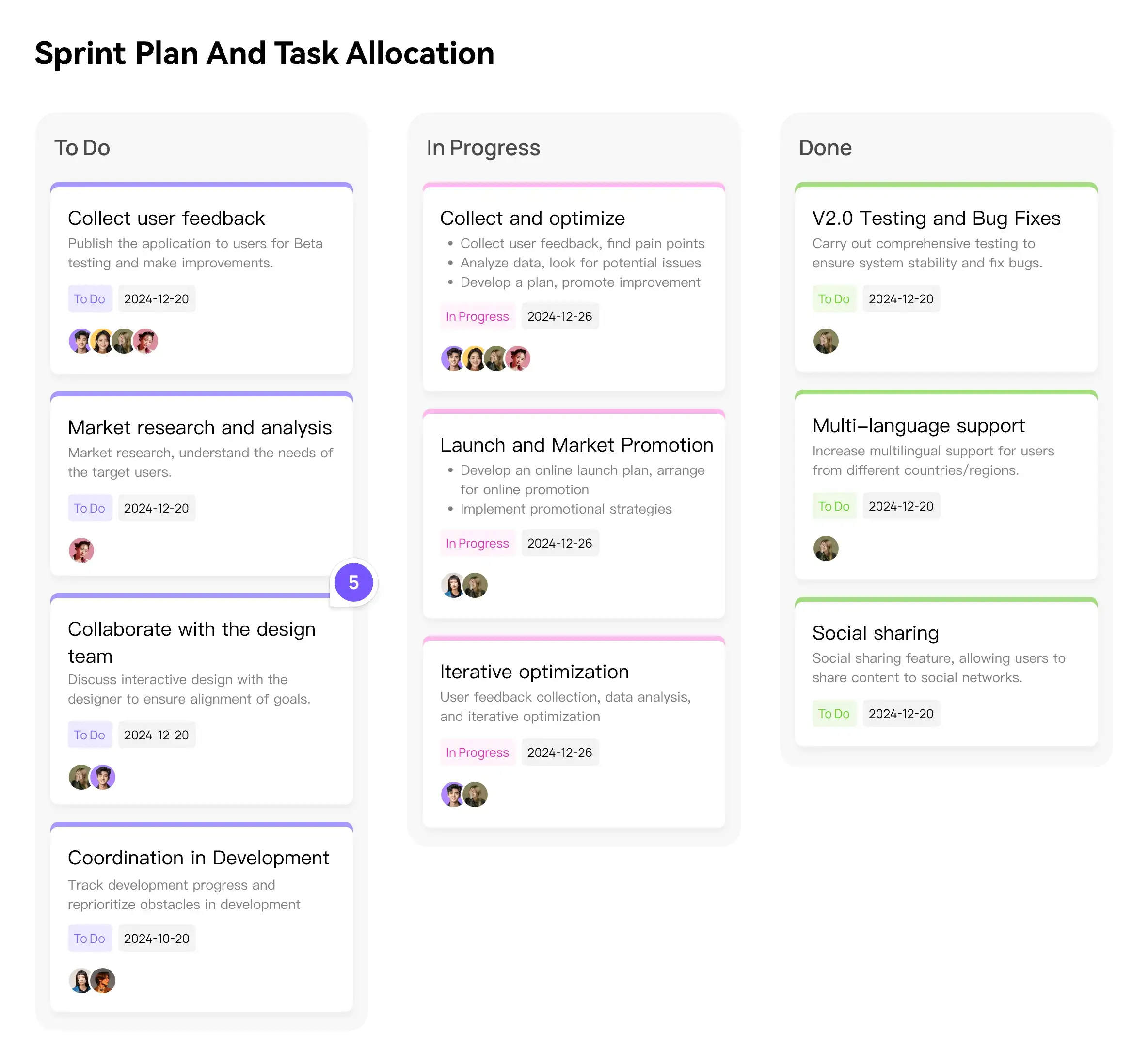 Market analysis, product planning, requirements sorting, task follow-up, team